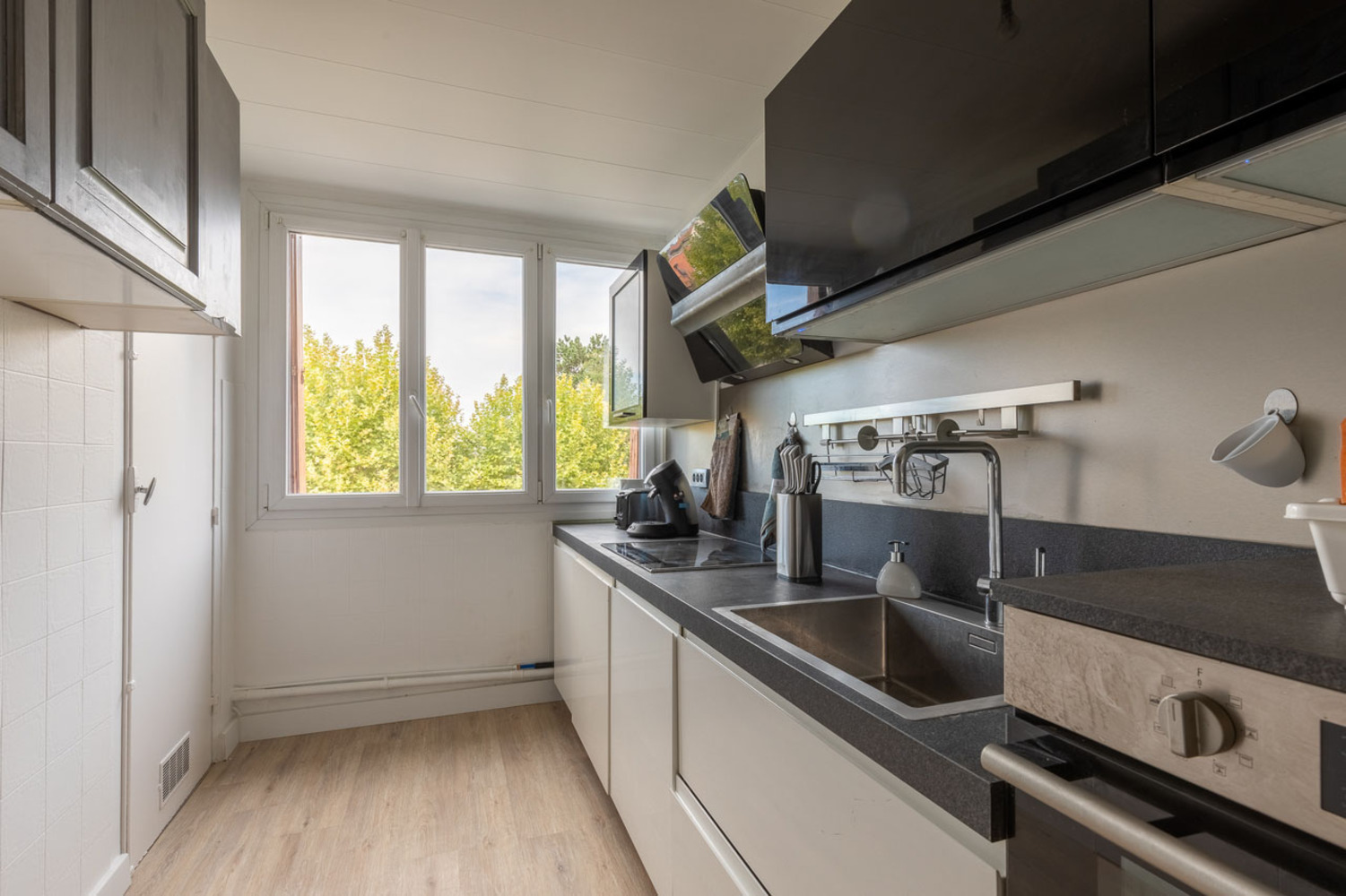 -Une cuisine : plaque de cuisson, hotte, micro ondes, frigo et tous les éléments utiles à l’entretien de l’appartement ( aspirateur, serpillère)