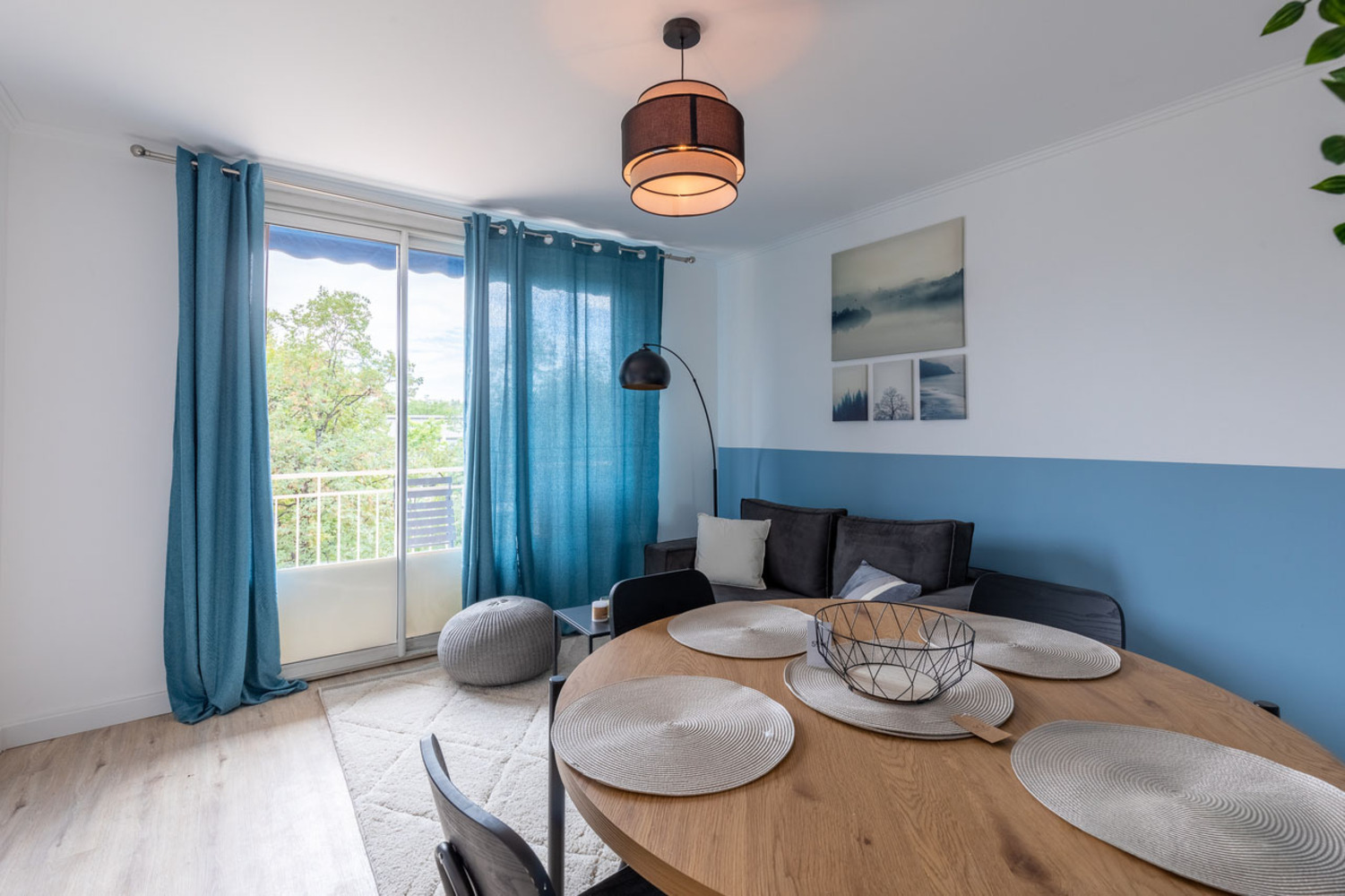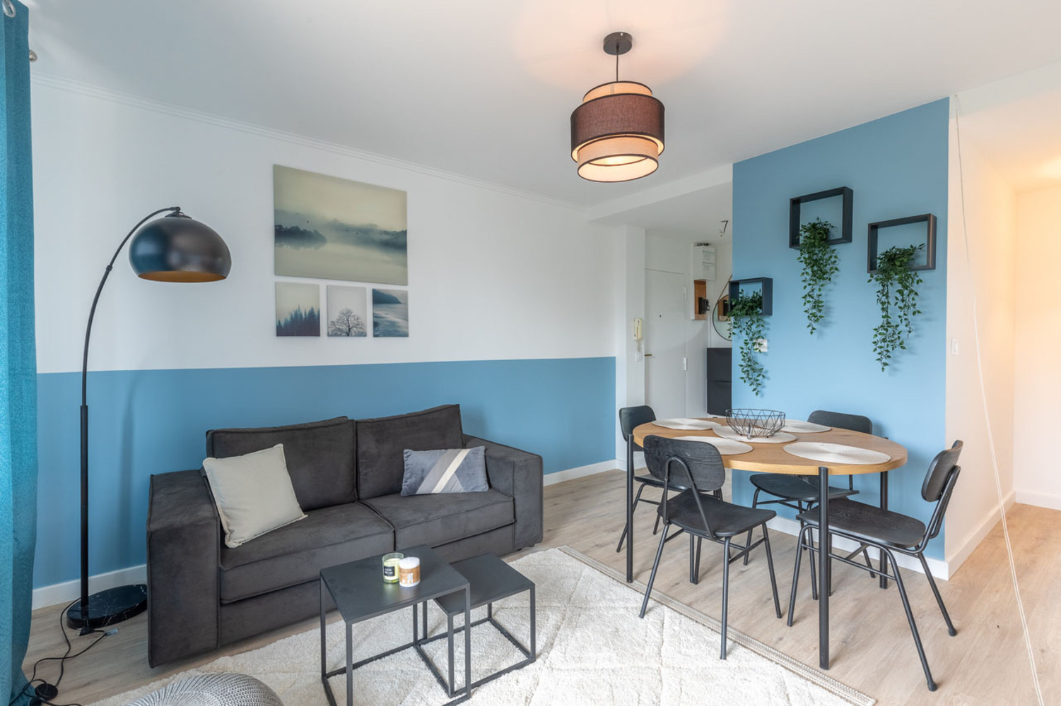 -Salon/ séjour : canapé convertible smart TV, meuble TV, fauteuil, table basse, table à mange