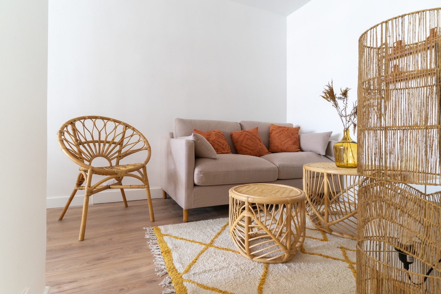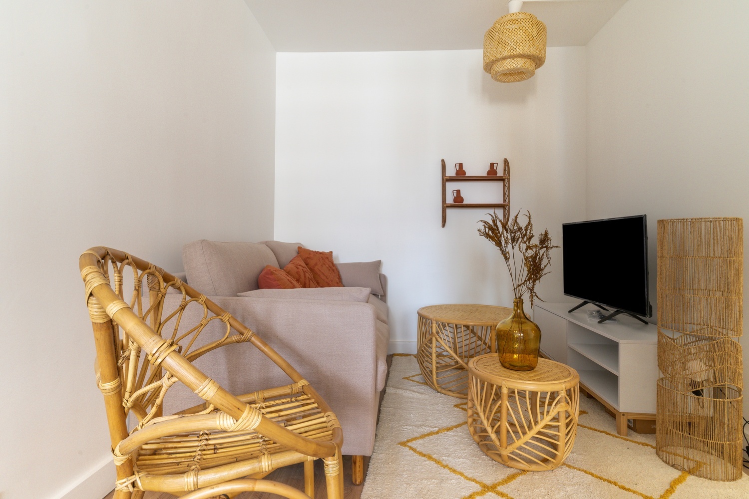 Vous retrouverez un séjour très lumineux meublé (canapé, table à manger, TV…), une cuisine équipée (vaisselles, four, lave-vaisselle, lave-linge, sèche-linge…) et 4 chambres spacieuses (lit double, bureau, armoire…), 2 salles de douche (commune) et WC séparé.