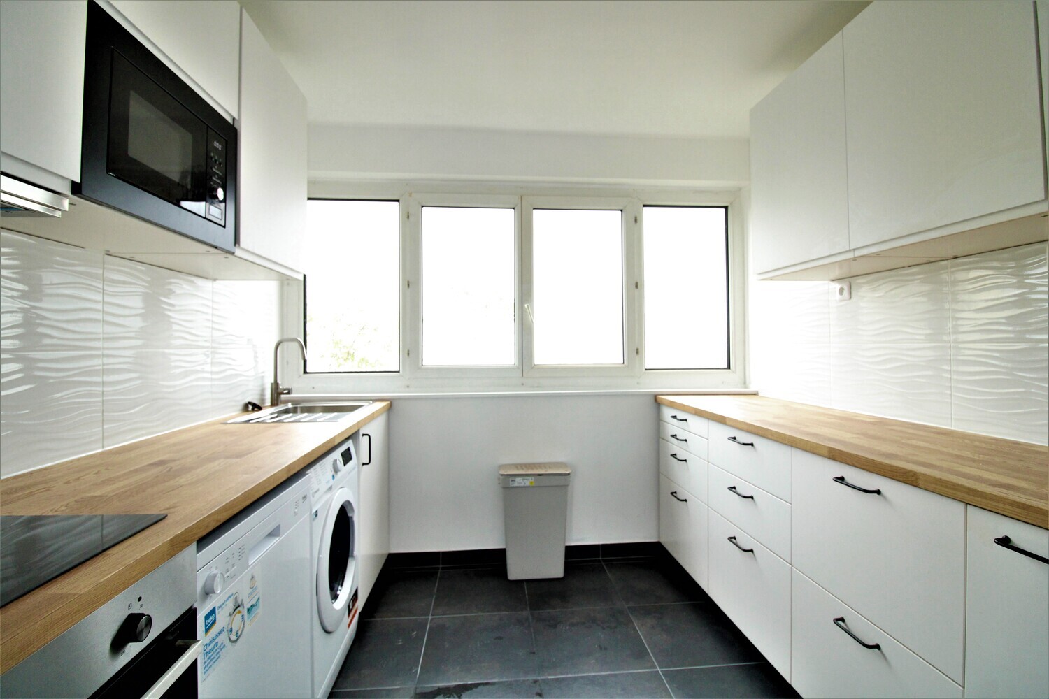 Vous retrouverez un séjour très lumineux meublé (canapé, table à manger, TV…), une cuisine équipée (vaisselles, four, lave-vaisselle, lave-linge séchant…) et 3 chambres spacieuses (lit double, bureau, armoire…) avec 1 salle de douche et WC séparé.